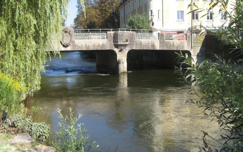 Старая Ратуше у моста, тоже относительно старая — построена в 1866 году по пректу придворного баварского архитектора Иоганна Марггаффа. Около нее фонтан в память о погибших в Первой мировой войне, фигура на фонтане изображает Св. Себастьяна. На крыше ратуши симпатичный золотой петушок. И сама ратуша производит впечатление расписного домика-пряника. В парадном зале Старой ратуши сейчас регистрируют браки.