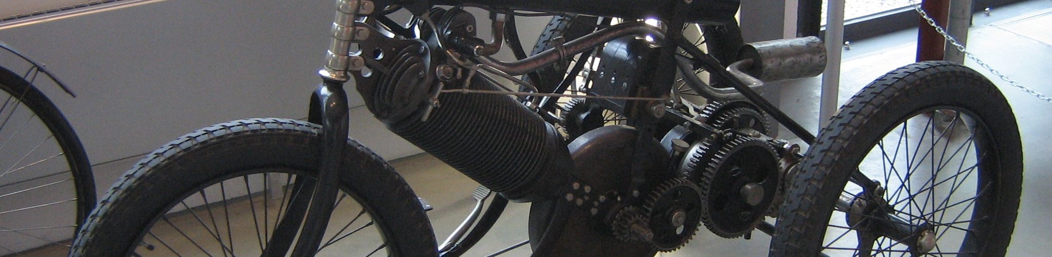 Уникальный в свое конструкции мотоцикл — двигатель которого не подвешивался на раму, а был ее неотъемлемой частью. Детище немецкого мотоциклетного завода Heinle & Wegelin. Данный экзмепляр снят в мюнхене — но в планах посетить родину Heinle & Wegelin, Аугсбург, где расположен интересный музей мотоциклов. История марки очень короткая — с 1890-го года завод произвдил велосипеды, в 1898-м решил делать трициклы, в 1900-ом обанкротился. Но трициклы, созданные дизайнером Oskar Blessing по мотвам подобных машин De Dion-Bouton несли в себе любопытные инженерные решения. Верхняя часть рамы заменена длинным бензобаком, прямо к которому крепилось сиденье, нижняя часть рамы состояла из единственного цилиндра двигателя. Шестерни коробки передач не были закрыты кожухом, как и маховик, вращавшийся прямо над дорогой между ног водителя. Представленный трицикл был экспонатом мотовыставки в Дюссельдорфе, сохранился в единственном экземпляре (и не факт, что воторой вообще был). В общем — следующая машина была уже четырехколесной, но, в связи с банкротством завода, также не пошла в серию.