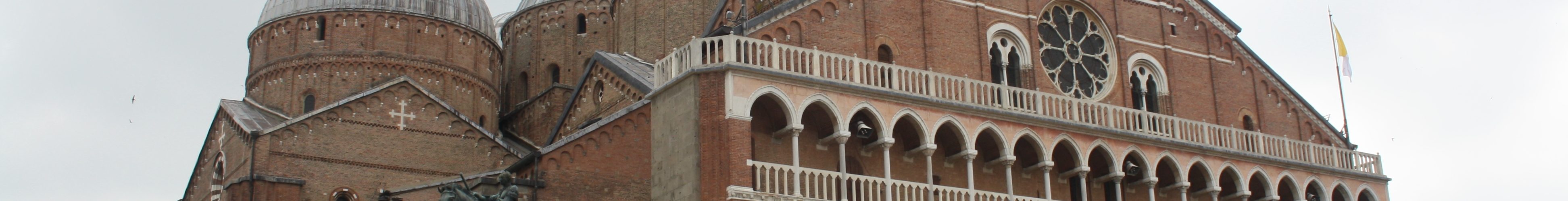 В Падуе есть много красивых церквей, но когда говорят «Собор» или «Собор Святого» — то имеется в виду только один из них — Собор Антония Падуанского. Один из самых ярких ораторов позднего средневековья, друг и последователь Францизска Ассизского., Антоний почитается покровителем Падуи, где прошли последние годы его жизни. И грандиозная базилика, где покоятся его мощи, и ныне считается одним из самых пышных и грандиозных сооружений Венето. Впрочем, назвать ее гармоничной или совершенной язык не поворачивается. Крайняя эклектика и наслоения многочисленных переделок делаю облик Собора если не прекрасным, то неповторимым и незабываемым. Больше всего он походит на иллюстрации к восточным сказкам, есть что-то васнецовское в этом сочетании византийских куполов, похожих на минареты звонниц и грандиозных размеров. Внутри ххрам не менее противоречив. Живописных и скульптурных шедевров в нем искать не стоит — они здесь немногочисленны и не первого ряда. Богатые надгробия и некоторое количество фресок интересны, но главное — в своем роде шедевром является интерьер Собора в целом. То есть войдя туда можно точно сказать: «Вау, я такого больше нигде не видел», Собственно, как и снаружи он напоминает огромную театральную декорацию в восточном стиле — здесь внешняя и внутренняя стороны как раз вполне гармонично сочетаются. Фотографировать внутри нельзя, поэтому снимков больше их дворов, с площади (ну, несколько я все-таки сделал). Перед Собором стоит знаменитая конная статуя кондотьера Гаттамелата работы Донателло. Из фресок можно рекомендовать работы Никколо Пиццоло и Альтикьеро да Дзевио, последователей Джотто, также работавшего в Падуе. К посещению строго рекомендован. Не обещаю, что понравится безусловно, но то, что не забудешь его никогда — это можно гарантировать.