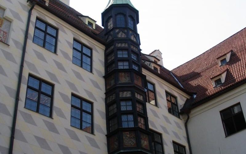 Действительно, это одно из старейших (наряду со Старым Питером — собором Св. Петра) строений города. На этом месте в эпоху основания города была резиденция герцога Генриха Льва. Историю этого места можно прочесть здесь. Идти недалеко, сам комплекс зданий довольно небольшой, особенно учитывая, что одно время это был центр Римской Империи (при императоре Людвиге IV). Но крайне приятно побродить по улочкам в районе Старого Двора. Кстати, сам Alter Hof был основательно порушен союзникам, но, в итоге, его восстановили почти в том виде, в котором он был перестроен к XVI-му веку. Обезянья башня, независимо от легенды о похищенном ручной обезьяной имераторе, производит сильное впечатление. Огромное количество расписанных домов с изображениями сценок городской жизни, баварских жителей в старинных костюмах и великолепными орнаментами, имитирующими кладку и лепнину. Маленькие ресторанчики и кафе, антикварные магазины и бутики, район тихий и очень престижный. Стоит заглянуть в открытые дворы и подворотни.